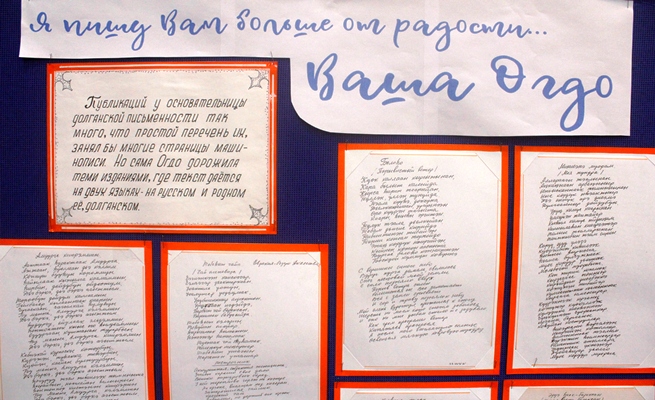 Рожденная в таймырской тундре и воспитанная ее просторами, она через всю жизнь пронесла любовь к родной земле, к своему народу. Мечтала, чтобы не угасала национальная культура, традиции, развивался родной язык, а ее творчество стало бы проводником в мир познания, красоты и любви – «открой мои первые книжки, пусть строка моя станет тропою…» - писала поэтесса. Огдо – одна из создателей долганского алфавита и письменности. Сборник стихов поэтессы «Бараксан», изданный в 1973 году – стал первым литературным изданием, где помимо русского стихи напечатаны на родном языке.