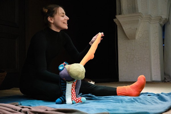 «Мой волшебный носок» – пример камерного спектакля для первого в жизни посещения театра. Сегодня возраст начинающей аудитории театра кукол бесконечно стремится к нулю, и грудные зрители спектакля Анны Ивановой-Брашинской еще не все ходят самостоятельно, поэтому сидят на коврике перед своими мамами или папами, или у них на руках.