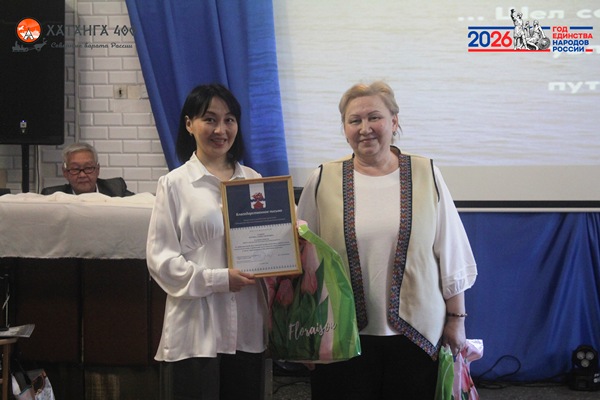 Почетными грамотами и благодарственными письмами были отмечены лучшие работники культуры – их вручили: председатель Хатангского сельского Совета Ирина Лаптукова, заместитель главы сельского поселения Хатанга Светлана Иванова, Оксана Эрбес, исполняющая обязанности директора МБУК «КДК» Галина Левштанова, председатель Ассоциации коренных малочисленных народов Таймыра Варвара Дуксина.