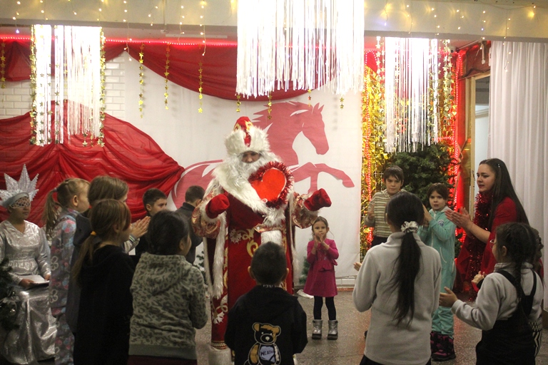 Новогоднее театрализованное представление состоялось в уютном, празднично украшенном салоне с нарядной елкой. Живая, эмоциональная игра артистов Дома культуры и театральной студии «Юные таланты» захватила юных зрителей, сделав их соучастниками представления. Ребята с готовностью откликнулись на призыв ведущей Татьяны Коваленко поиграть в общем круге, отгадать загадки, составить хоровод.