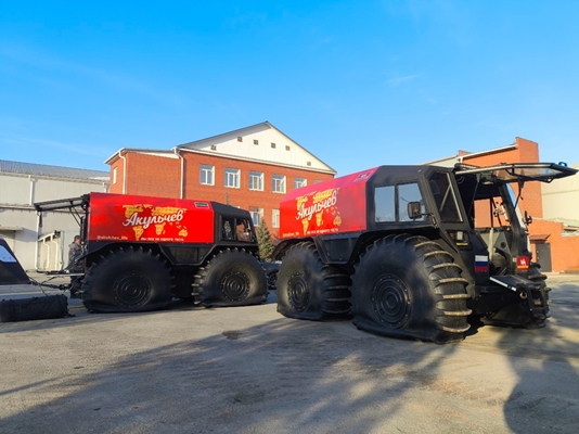 Команда из шести человек под руководством кондитера и предпринимателя Сергея Акульчева выдвинется из поселка Тазовский 22 марта на двух вездеходах «Архант» - уникальной колесной технике, способной преодолевать расстояния как по суше, так и по воде.