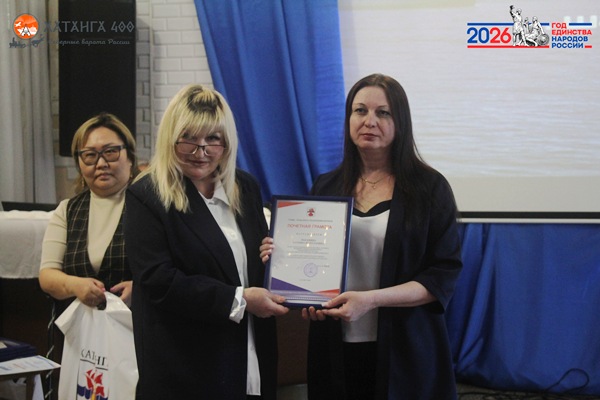 Почетными грамотами и благодарственными письмами были отмечены лучшие работники культуры – их вручили: председатель Хатангского сельского Совета Ирина Лаптукова, заместитель главы сельского поселения Хатанга Светлана Иванова, Оксана Эрбес, исполняющая обязанности директора МБУК «КДК» Галина Левштанова, председатель Ассоциации коренных малочисленных народов Таймыра Варвара Дуксина.
