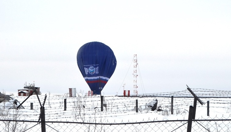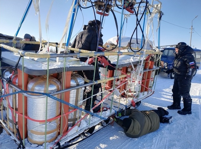 Аэростат с рекордсменами садится на ВПП в Хатанге. 26 марта 2023г